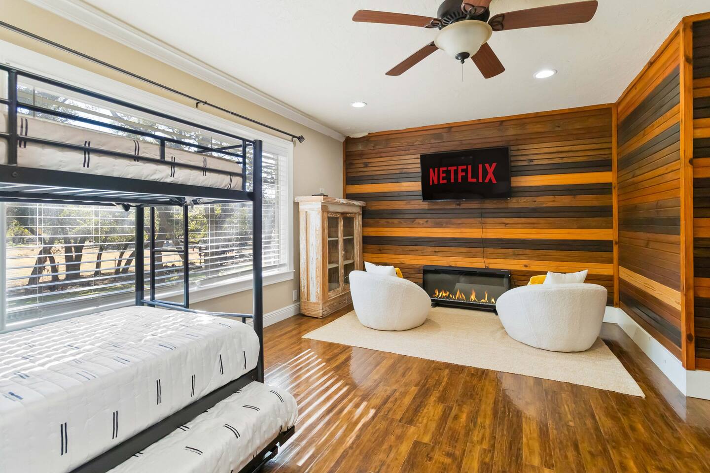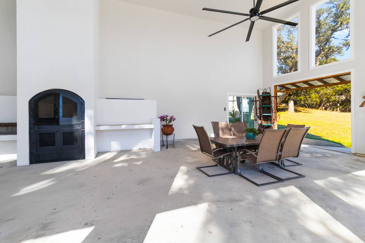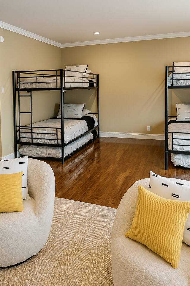 Explore a few handpicked local favorites during your stay: 🛍️ The Shops at La Cantera (25 min drive) – Upscale outdoor shopping, dining, and beautiful Hill Country views 🎢 Six Flags Fiesta Texas (25 min drive) – Roller coasters, shows, and family fun 🛶 Boerne City Lake Park (9 min drive) – Kayaking, swimming, fishing & peaceful views 🌳 River Road Park (16 min drive) – Scenic river views, walking paths, and picnic areas 🎣 Joshua Springs Park & Preserve (16 min drive) – Nature trails, wildlife, and fishing spots 🍷 Singing Water Vineyards (28 min drive) – Tasting room, live music & vineyard scenery 🍳 The Dienger Trading Co. (15 min drive) – Local favorite for breakfast, pastries, and boutique shopping ☕ Boerne Grill (15 min drive) – Cozy coffeehouse serving classic comfort food 🌮 Las Guitarras (17 min drive) – Authentic Mexican spot with generous portions 🍺 Cibolo Creek Brewing Co. (16 min drive) – Craft beer, comfort plates, and a laid-back patio 🍖 Smokey Mo's BBQ (20 min drive) – Hill Country smokehouse with chef-driven flavors 🛒 Hill Country Mile (15 min drive) – Walkable stretch of boutiques, eateries, and local shops ✨ And so much more to visit nearby ✨ 🌟 Main House – Sleeps 10+ Common Areas • Fully equipped kitchen with a 20ft island and bar seating • Open living room with large plush sectional + streaming TV • Dining area with Hill Country views • Half bathroom Bedrooms & Bathrooms • Primary Bedroom 1 – King bed + fireplace + private ensuite • Primary Bathroom – Walk-in tiled shower + rustic touches • Bedroom 2 – Bunk room sleeps 6 + lounge area + streaming TV + Glass front electric fireplace • Bedroom 3 – Queen bed + streaming TV • Full Bathroom 2 – Shared by Bedrooms 2 & 3 🌿 Outdoor Amenities & Features • Shallow stone cooling basin, perfect for dipping your feet and relaxing (not a standard pool) • Garage parking available upon request • Private gated entry for added peace and privacy • Beautiful covered patio set for outdoor dinners (seats 6 comfortably) • Outside breakfast table for morning coffee or meals • Large BBQ grill for outdoor cooking and family gatherings • Farm animals on the property, lovely to watch, but not to be approached • Board games provided for cozy nights in • Serene Hill Country views from every angle • Spacious, quiet grounds designed for true retreat-style relaxation